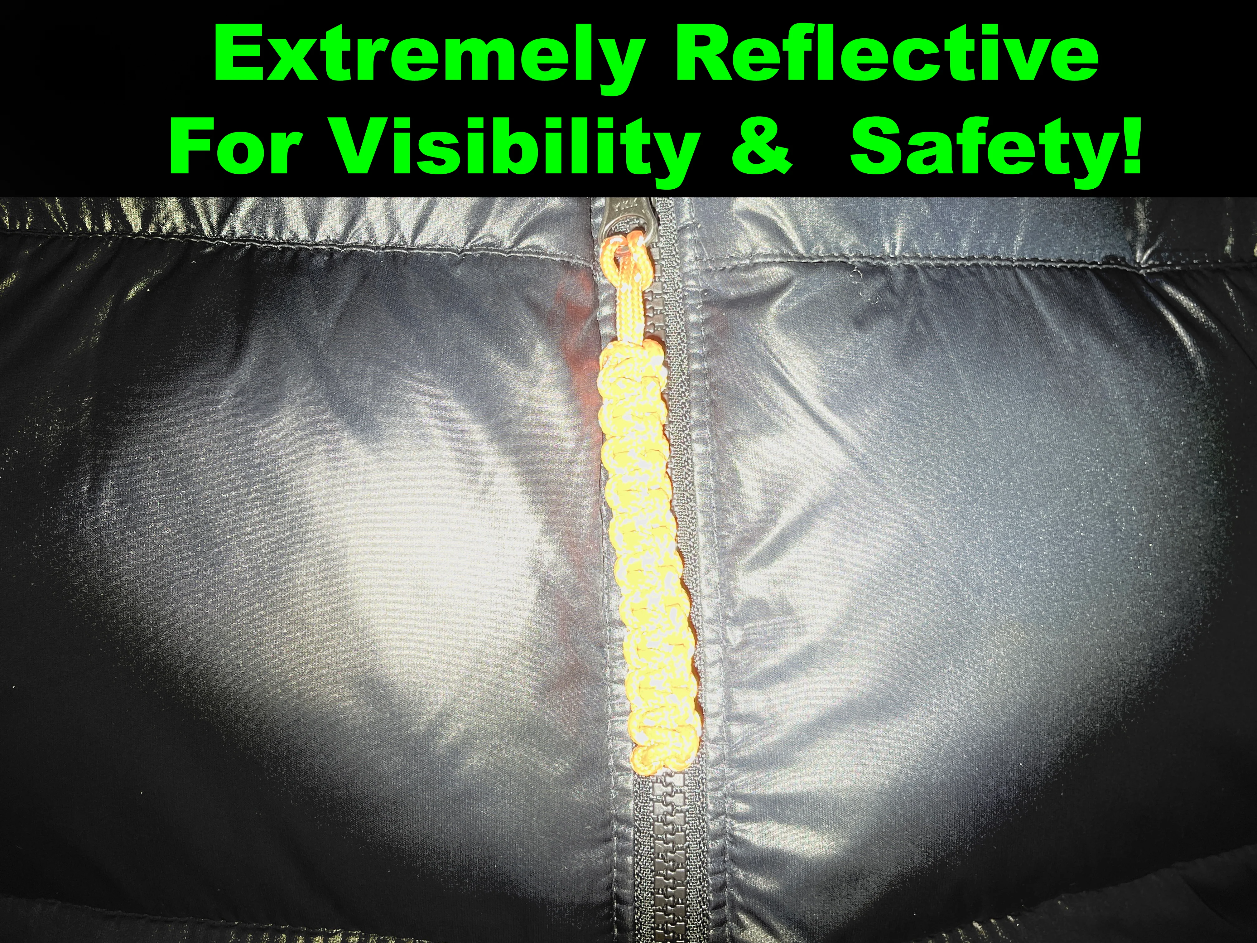 Made from our 3/32” Micro reflective cord, these zipper pulls are reflective too!